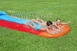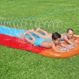 De Bestway glijbaan is een geweldige keuze voor verfrissend zomerplezier in de tuin. Gewoon uitrollen, vastzetten op de grond en aansluiten op de tuinslang. Dankzij de stevige bevestigingen blijft de glijbaan op zijn plaats en zorgen ingebouwde sproeiers voor een constante waterstroom voor maximale glijprestaties.