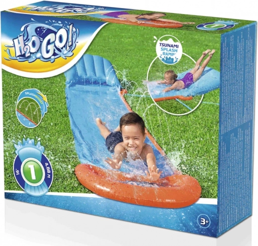 Waterglijbaan Tsunami van Bestway is ontworpen om maximaal plezier te bieden dankzij de lange gestructureerde glijbaan, die over de gehele lengte wordt besproeid door waterstralen.