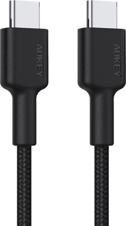 aukey usb‑c naar usb‑c kabel 0,9 m met nylonvlecht, 60 w pd, 3 a, zwart