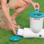 BESTWAY FlowClear Skimatic is de ideale oplossing voor opzetzwembaden die effectieve en comfortabele reiniging vereisen. Dankzij de hoge doorstroming van 3974 l/u en de ingebouwde skimmer verwijdert hij betrouwbaar drijvend vuil en filtert tegelijk het water binnen in de pomp. De installatie is snel en intuïtief – er zijn geen extra slangen of adapters nodig.