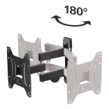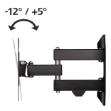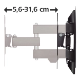Compatibel met VESA-standaarden van 75x75 tot 200x200 mm, geschikt voor een tv-gewicht tot 20 kg. De maximale en minimale afstand tot de muur is respectievelijk 31,6 cm en 5,6 cm, wat aanpassing aan individuele voorkeuren garandeert. De zwarte kleur van het stalen plaatmateriaal past moeiteloos in de meeste interieurs.