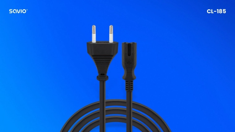 Betrouwbare SAVIO CL-185 voedingskabel van 5 m voor veilig en stabiel stroomvoorziening van zowel thuis- als kantoortoestellen. Dankzij de koperen geleider en de connectoren IEC C7 en CEE 7/16 (type C) biedt hij uitstekende geleiding, lange levensduur en brede compatibiliteit met laptops, tv’s, adapters en andere apparatuur.
