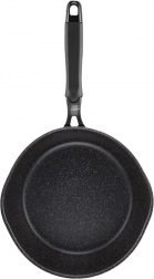 De diepte van 7,5 cm biedt ruimte voor grotere porties en de zij-schenktuiten vergemakkelijken het afgieten van sauzen of bouillons zonder geknoei. De ergonomische handgreep ligt goed in de hand.