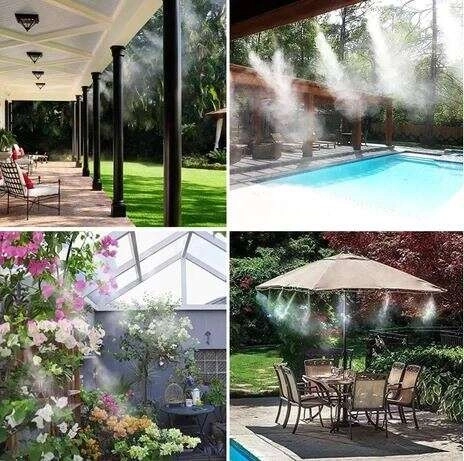 Perfect voor terrassen, pergola’s, balkons, rond het zwembad en in kassen. De nevel bevochtigt de lucht en is gunstig voor planten.