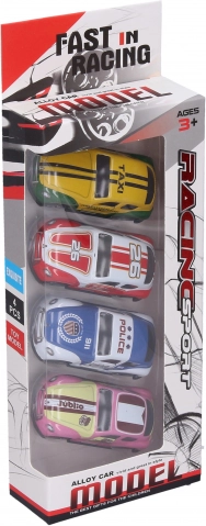 Compacte, maar snelle raceautootjes voor grote wedstrijden in de kinderkamer! In de set vind je 4 metalen autootjes met een lengte van 7 cm en een terugtrekmechanisme voor een snelle rit. Ideaal vermaak voor kleine coureurs vanaf 3 jaar.