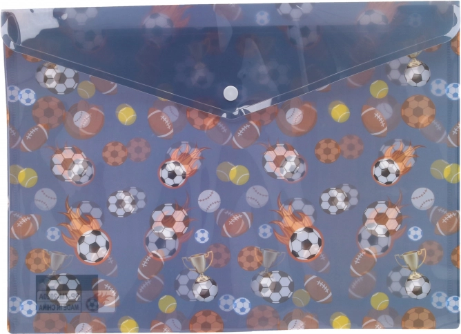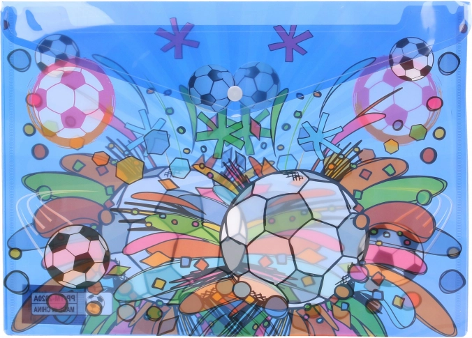 Praktische plastic map met druksluiting van 35,8 × 26 cm die je A4-documenten veilig beschermt. Ideaal voor school en kantoor, met aantrekkelijke sportmotieven met een bal en een comfortabele druksluiting. Biedt snelle toegang, bescherming tegen kreukels en vocht en 4 verschillende designs voor elke sportliefhebber.