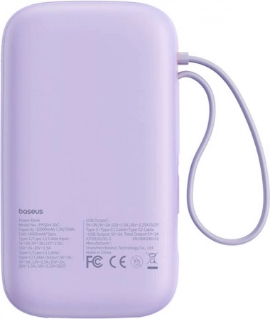 Powerbank BASEUS QPow 2 20000 mAh 30 W met 2× USB‑C (paars)