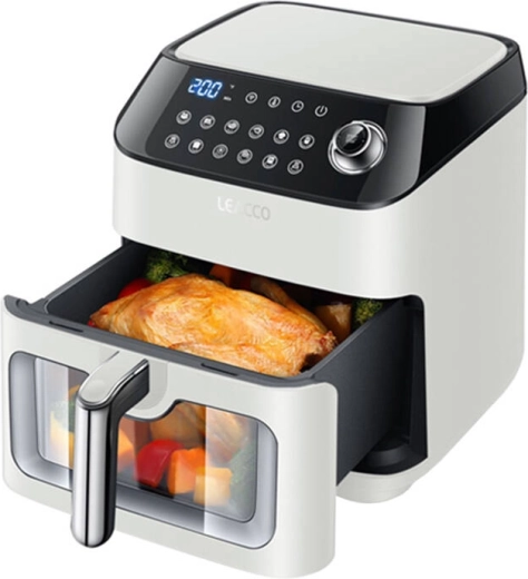 Hete lucht friteuse LEACCO AF020 is de ideale oplossing voor degenen die het vetgehalte willen verminderen zonder hun favoriete gerechten op te geven. Pas eenvoudig maximaal 8 modi aan voor gezonde en smakelijke maaltijden.