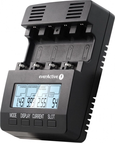 De EVERACTIVE NC-3000 is een slimme lader met geavanceerde diagnostiek voor Ni-MH/Ni-Cd-accu’s. Elke van de vier sleuven wordt onafhankelijk aangestuurd, zodat u gelijktijdig verschillende typen en capaciteiten kunt laden. Het grote, verlichte LCD-scherm toont spanning, stroom, tijd en capaciteit en maakt zo de controle over het hele proces eenvoudig.