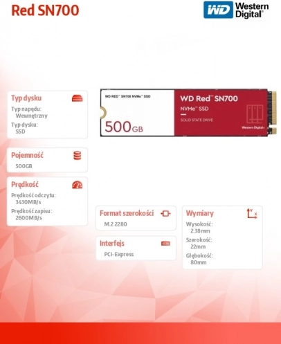 SSD WD Red SN700 500 GB NVMe M.2 2280 PCIe