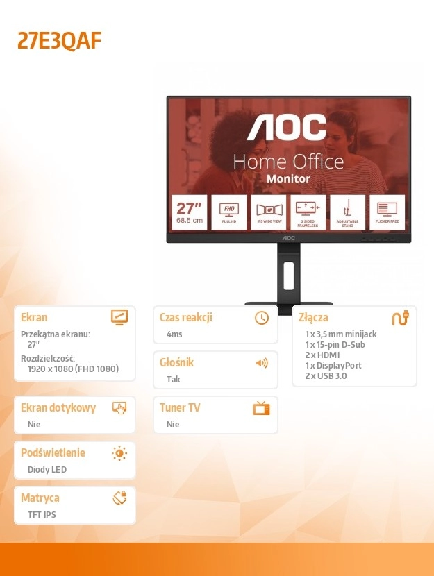 De elegante, dunne rand en de stijlvolle zwarte voet geven de monitor een modern uiterlijk dat in elke omgeving past.