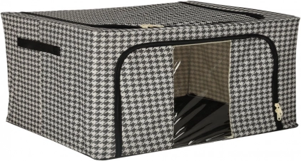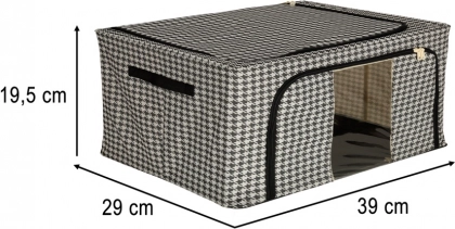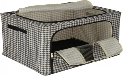 Houd het thuis netjes met een compacte organizer met een inhoud van 22 l. De textiele box met elegant zwart‑wit patroon heeft een transparant venster, ritssluiting en een interne frameconstructie v... Meer tonen
