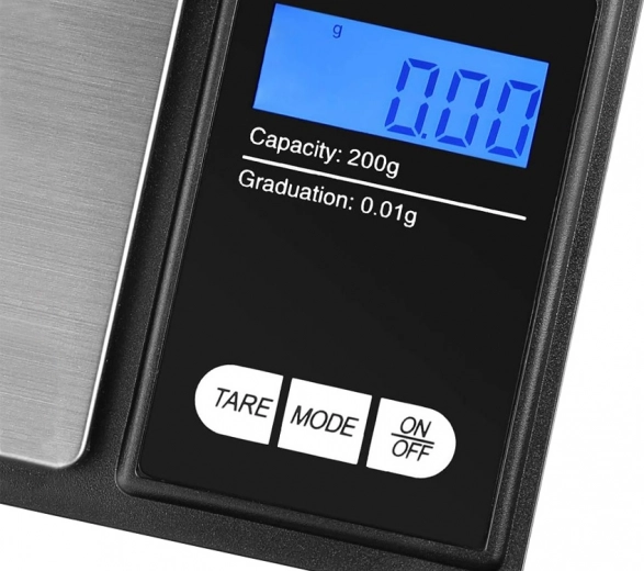 Precieze zakweegschaal voor sieraden en fijn wegen met een capaciteit van 200 g en een resolutie van 0,01 g. Biedt hoge nauwkeurigheid, compacte afmetingen, eenvoudige bediening en een roestvrijstalen weegplatform met een overzichtelijk verlicht display. Ideaal voor juweliers, laboratoria, apotheken en voor hobby en moleculaire gastronomie.