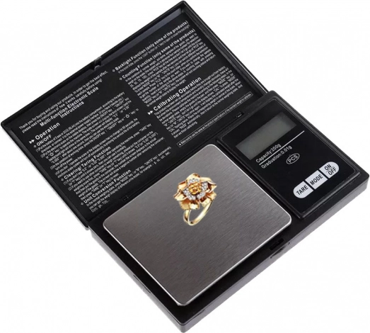 Zakformaat digitale juweliersweegschaal 200 g / 0,01 g met roestvrijstalen platform