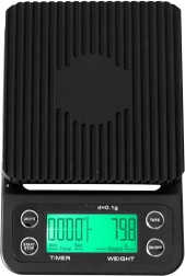 Deze weegschaal combineert nauwkeurig wegen met geïntegreerde timers zodat u nauwkeurig de bereidingstijd van uw koffie kunt volgen.