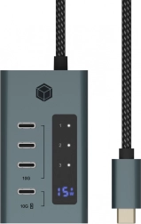 Compacte USB-C-hub breidt je apparaat uit met vier moderne USB‑C-poorten met een overdrachtsnelheid tot 10 Gb/s. Biedt gelijktijdige gegevensoverdracht en opladen via een speciale poort tot 20 W, heeft een geïntegreerd display voor inzicht in gebruik en werkt via Plug & Play zonder installatie.