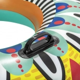 De zwemring Fiesta brengt stijl en plezier terug in het zwembad dankzij zijn levendige graphics en kleurrijke tinten. Met een diameter van 107 cm en twee zwarte handgrepen voor een stevige grip biedt hij veiligheid voor kinderen vanaf 12 jaar en volwassenen. Het geïntegreerde veiligheidsventiel zorgt voor eenvoudig opblazen en leeglaten, waardoor opbergen een fluitje van een cent is.