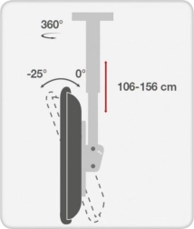 Betrouwbare plafondhouder voor tv’s en displays met een diagonaal van 37–70" waarmee u ruimte bespaart en de ideale kijkhoek bereikt. Dankzij de stevige stalen constructie en ondersteuning van de VESA-standaard biedt hij een veilige en veelzijdige installatie in huis, op kantoor en in commerciële ruimtes.