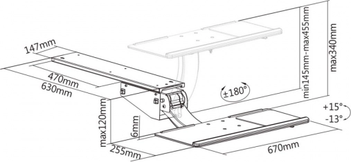 Het schuifmechanisme met uitschuifbare armen zorgt voor een vloeiende instelling van de afstand van het toetsenbord tot de rand van het bureau, precies naar jouw wens.