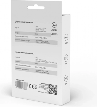 Het apparaat ondersteunt diverse standaard pc-resoluties (van 640×480 tot 1920×1080) en zet deze om naar 720p of 1080p voor maximale compatibiliteit met moderne displays. Eenvoudige plug & play-aansluiting zonder ingewikkelde instellingen.