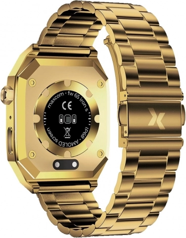 Maxcom FW65 Iron S: elegante gouden smartwatch voor heren. Metalen behuizing, helder display en fitnessfuncties voor werk en vrije tijd.