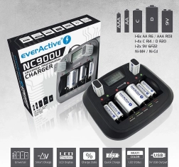 EVERACTIVE universele Ni‑MH lader met LCD en USB, 8 kanalen