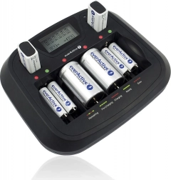 Krachtige universele acculader EVERACTIVE met 8 onafhankelijke kanalen en een duidelijk LCD‑display. Laadt moeiteloos Ni‑MH AA/AAA/C/D en 9V, ondersteunt herstel (refresh) en ontladen en kan ook individuele cellen en ongewone combinaties aan. Voorzien van een USB‑poort en LED‑statusindicatie voor elke sleuf.