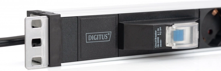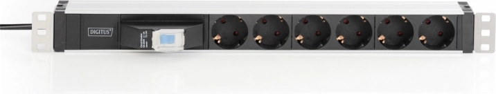Betrouwbare rack PDU-strip van DIGITUS voor 19'' kasten met centrale stroomverdeling via 6 schuko-stopcontacten met een hoek van 45°, 2 m kabel CEE 7/7 en een overstroombeveiliging 16 A voor veilig gebruik. De robuuste aluminium behuizing en de mogelijkheid tot 1U montage, horizontaal of verticaal zorgen voor orde en flexibiliteit in elke rack.
