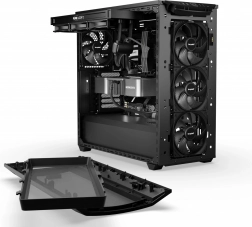 Drie voorgeïnstalleerde Pure Wings 3 140 mm PWM ventilatoren bieden hoge airflow bij lage geluidsniveaus – zelfs bij hogere toerentallen blijft de werking geraffineerd. Verder is er eenvoudige, gereedschapsloze installatie van drives, doordachte kabelgeleiding en een uitneembaar stoffilter voor gemakkelijk onderhoud.