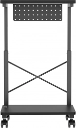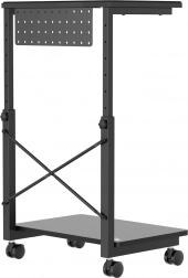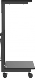 Deze verrijdbare standaard is ideaal voor wie vaak de positie van de computer moet veranderen of beperkte werkruimte heeft. Met de mogelijkheid om de hoogte van 550 tot 850 mm in te stellen, kan hij worden aangepast aan verschillende soorten bureaus en werkplekken, wat de flexibiliteit aanzienlijk vergroot. Bovendien biedt de praktische plank ruimte voor het opbergen van accessoires of kan dienen als ondergrond voor een laptop.