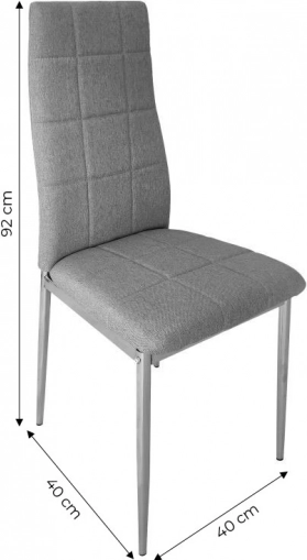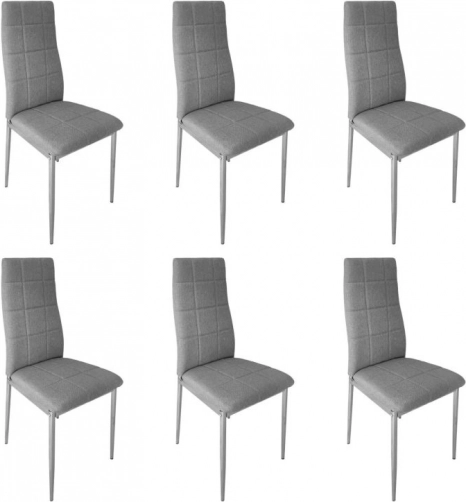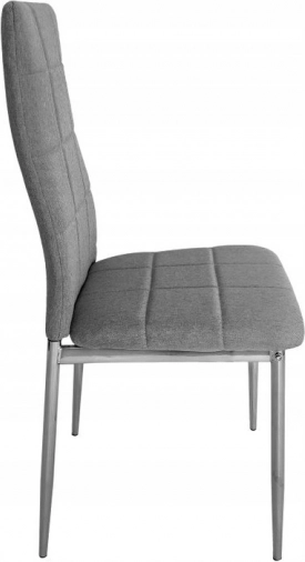 De stoelen passen perfect bij elke familietafel in de eetkamer en keuken. De grijze, gestoffeerde uitvoering van een aangename stof vult elk interieur prachtig aan.