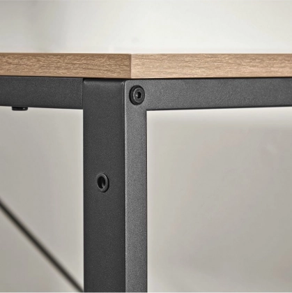 Het tafelblad is diep genoeg voor een comfortabele en ontspannen zithouding tijdens werk of studie. De planken bieden voldoende ruimte voor praktische opslag van bloempotten, boeken of andere kleine spullen die je graag bij de hand hebt.