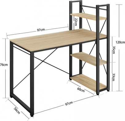 De gekozen computertafel is ontworpen voor wie een combinatie van werkruimte en opbergruimte nodig heeft. Dankzij het ruime blad is er comfortabel plaats voor computer, monitor, speakers, printer en andere noodzakelijke accessoires. Het plankensysteem is ideaal voor het opbergen van boeken, decoraties of planten en vult zo je interieur perfect aan.