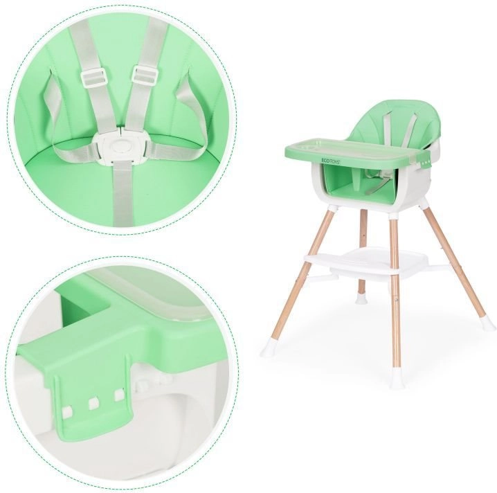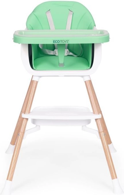 Praktische 2-in-1 kinder eetstoel van ECOTOYS combineert een hoge kinderstoel en een losse zitverhoger voor een gewone stoel. Biedt een stabiele constructie met metalen poten, een gemakkelijk afwasbaar dubbel dienblad geschikt voor de vaatwasser, een 5-punts veiligheidsgordel, antislipdopjes en een voetsteun. Ideaal voor kinderen van 6 tot 36 maanden met een draagvermogen van 20 kg.