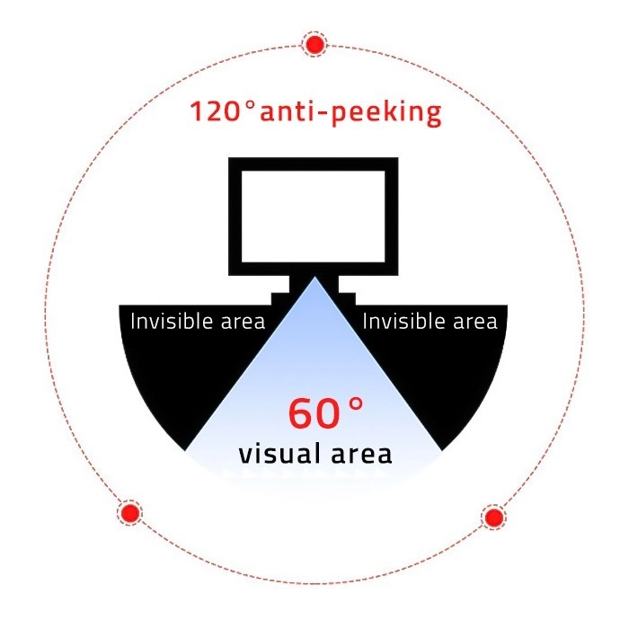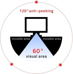 De micro-louvertechnologie zorgt ervoor dat het beeld van voren duidelijk zichtbaar is, terwijl ongewenste zijdelingse inkijk wordt geblokkeerd. Zodra de kijkhoek 30 graden bereikt, wordt het beeld volledig verduisterd voor optimale privacy.