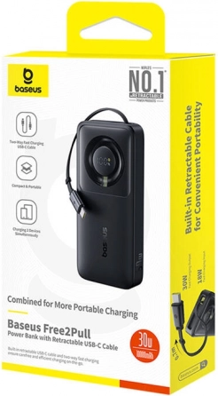 Powerbank Baseus Free2Pull 10000mAh 30W met kabel (zwart)