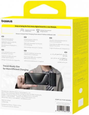 Nooit meer een lege batterij op het slechtste moment. De Baseus Compact IP powerbank combineert 20 W snel laden met een praktische geïntegreerde USB‑C‑connector, zodat je je apparaat direct kunt aansluiten zonder naar een kabel te zoeken. Dankzij de capaciteit van 5000 mAh vult hij veilig de energie aan van je telefoon, oordopjes en andere accessoires.