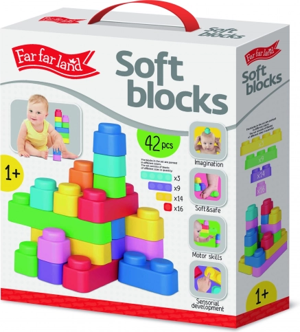 Bouwpakket Zacht 42 Blokken van het merk Far Far Land biedt geweldig plezier voor kinderen dankzij de gekleurde zachte blokken van veilig materiaal.