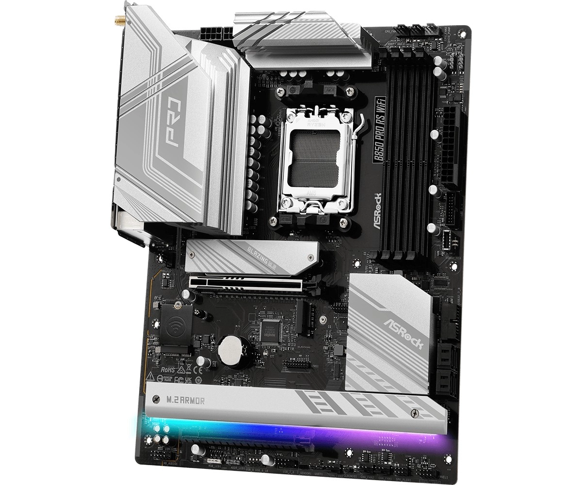 Bouw een snelle en stabiele pc op het ASRock B650 Pro RS WiFi moederbord voor socket AM5. Het biedt een 8‑laags PCB voor betere stabiliteit en temperaturen, ondersteuning voor DDR5 met XMP/EXPO-profielen voor eenvoudig overklokken en geïntegreerde Wi‑Fi. Dankzij kwaliteitscomponenten, efficiënte koeling en brede connectiviteit is het een uitstekende keuze voor krachtige gaming- en werkconfiguraties.