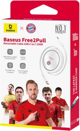 Het geïntegreerde mechanisme zorgt voor soepel in- en uitrollen van de kabel, stabiele stroomoverdracht en een lange levensduur. Het lichte, compacte ontwerp minimaliseert kabelwirwar en is ideaal voor in rugzak of zak. De speciale editie met het logo van FC Bayern München zal alle fans aanspreken met een modern, strak design.