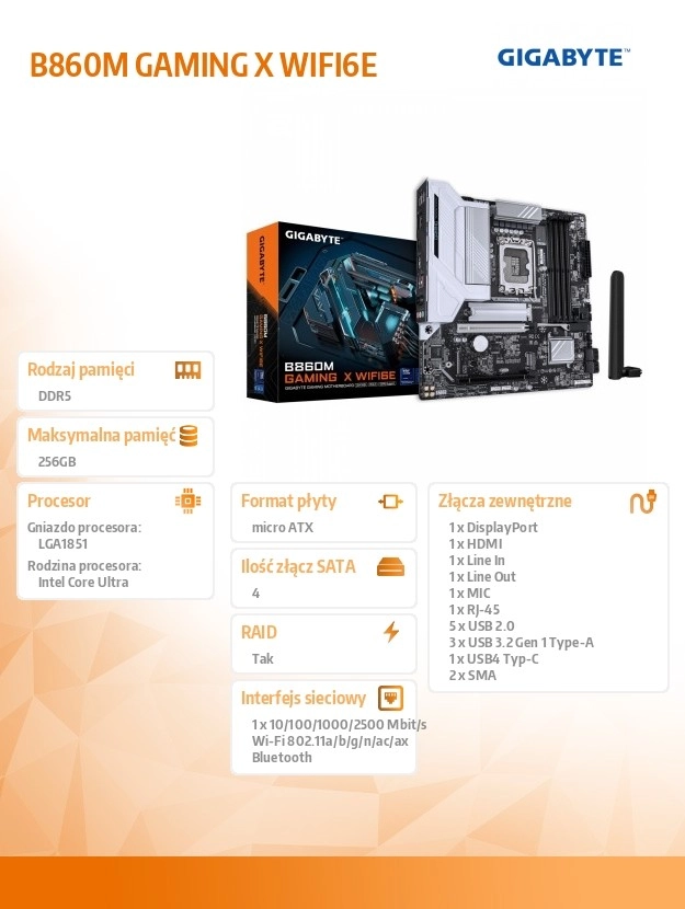 Compact mATX‑moederbord voor de nieuwste Intel Core Ultra (2e generatie) processors met een krachtige 8+1+2‑fasen VRM, ultrasnelle opslag met M.2 PCIe 5.0 x4, ingebouwde Wi‑Fi 6E en 2,5GbE LAN. Eenvoudige montage dankzij EZ‑Latch schroefloze mechanismen en uitstekende koeling met VRM Thermal Armor Advanced en M.2 Thermal Guard. Brede connectiviteit inclusief USB4 Type‑C met DP‑Alt, HDMI en DisplayPort voor gamers en veeleisende gebruikers.