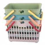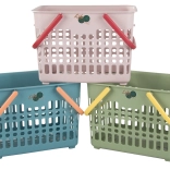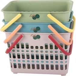 Praktische mand met stevige constructie en inklapbare handgrepen, perfect voor kleine boodschappen, het dragen van etenswaren, uitstapjes en het opbergen van kleinigheden in huis. De open roosterstructuur zorgt voor luchtcirculatie en snel zicht op de inhoud, terwijl het robuuste plastic een lange levensduur garandeert.