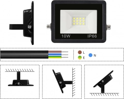Deze LED-schijnwerper biedt helder, koud licht met een kleurtemperatuur van 6000 K, wat zorgt voor uitstekende zichtbaarheid zelfs onder de meest uitdagende omstandigheden. De schijnwerper is uitgerust met 12 hoogwaardige LED-diodes, die een lange levensduur hebben en energie besparen.