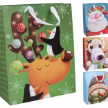 Elegante kerstcadeautas met afmetingen 23x18x10 cm, de perfecte oplossing voor het verpakken van kleine presentjes. Deze tas is verkrijgbaar in vier verschillende motieven, elk met een uniek kerstontwerp dat je dierbaren zal betoveren.