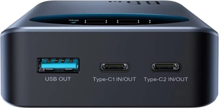 Drie poorten (USB en twee Type-C) maken het mogelijk om meerdere apparaten tegelijk op te laden, ideaal voor multitasking.