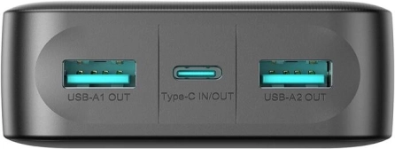 Voorzien van drie oplaadpoorten – twee USB-A en één Type-C – waardoor je tot drie apparaten tegelijk kunt opladen.