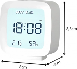 Naar standaard tijdmeting biedt de wekker sensoren voor temperatuur en vochtigheid, wat het dagelijkse gebruik verrijkt en meer inzicht geeft in de omgeving.