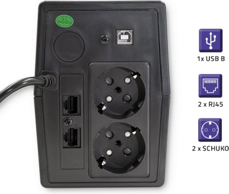 - UPS-noodstroomvoorziening (line-interactive, met AVR)