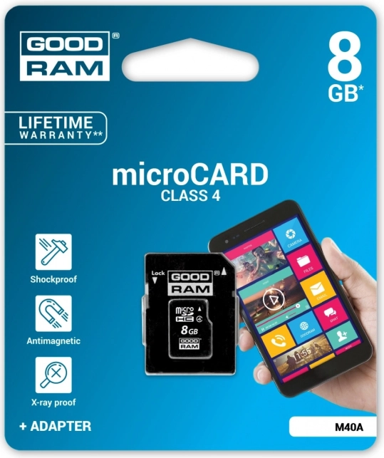 De GOODRAM microSDHC-geheugenkaart van 8 GB is ideaal om de opslagruimte van uw mobiele apparaat uit te breiden. Met een capaciteit van 8 GB biedt zij voldoende ruimte voor uw bestanden en dankzij de adapter kan zij ook worden gebruikt in apparaten met een SD-slot.