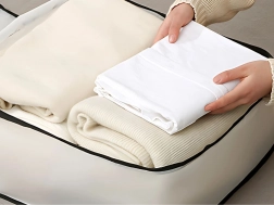 De organizer kan beddengoed, seizoenskleding, dekens, handdoeken en andere stoffen bevatten, waardoor ze kunnen worden georganiseerd in de kast, onder het bed of op een plank.